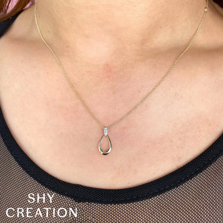 Expertly crafted in 14K white gold, this elegant 18" necklace features a delicate teardrop pendant adorned with 0.03ctw of sparkling diamonds. The timeless design and...