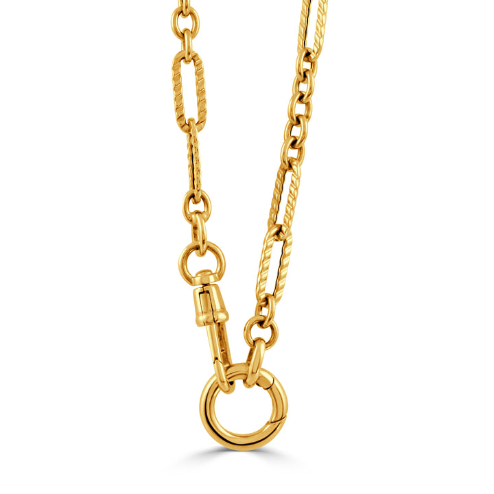 Crafted from 14K yellow gold, this 18-inch textured chain offers a refined look with durable elegance. The push clip clasp ensures secure and easy fastening, making it a reliable choice for everyday wear or layering with other pieces. Its textured finish adds subtle depth, enhancing its classic appeal for a sophisticated style.